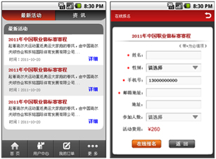 用戶在客戶端瀏覽活動信息后,可直接在線報名參加活動,與后臺同步管理。