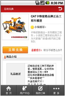 會員可使用所得積分換取禮品或消費(fèi)卷,會員可根據(jù)自己消費(fèi)所得積分換取不同禮品,實(shí)現(xiàn)禮品的在線兌換功能。管理員可隨時在后臺查看所有會員充值、消費(fèi)、禮品交換歷史記錄。