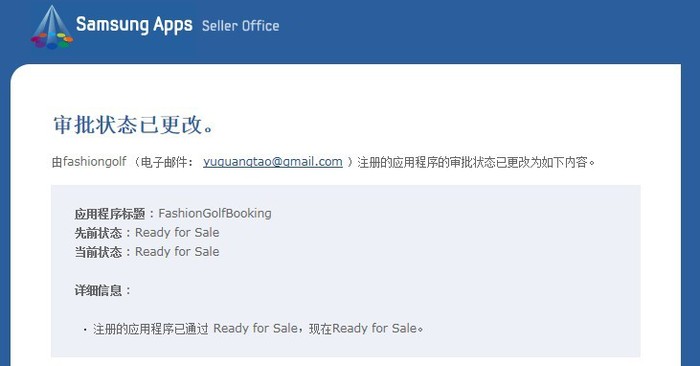 時(shí)尚高爾夫訂場(chǎng)手機(jī)客戶端,成功通過(guò) Samsung Apps 審批