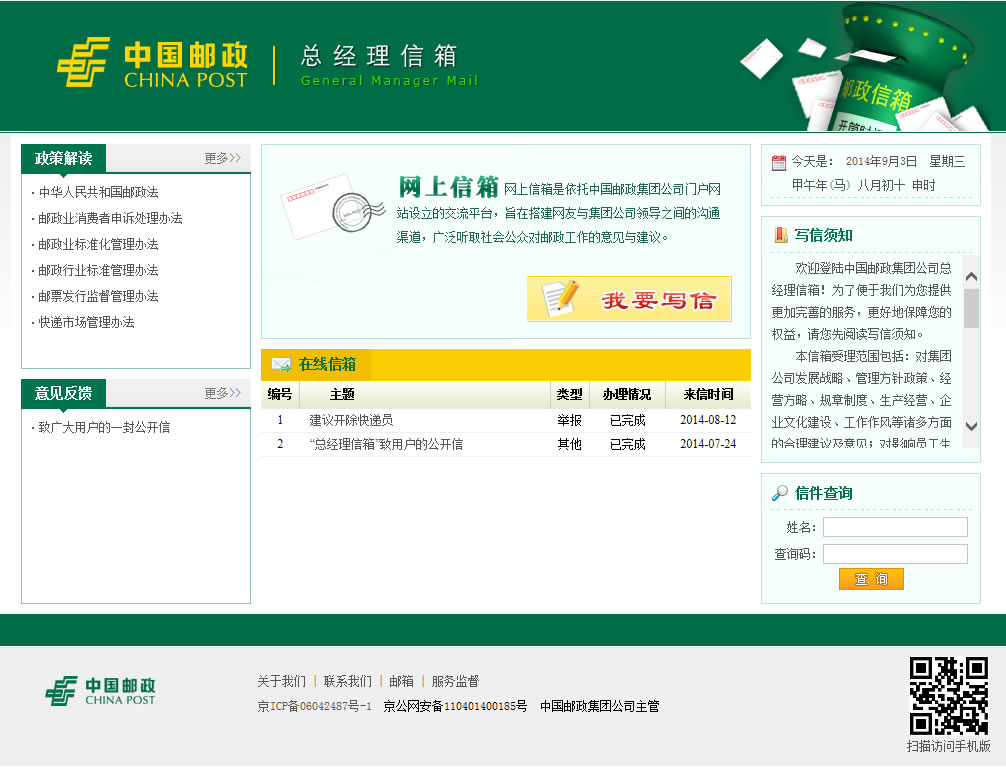 中國郵政總經(jīng)理信箱