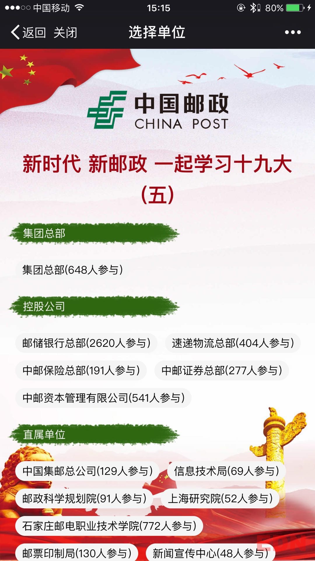 - 由我公司制作開發(fā)新時(shí)代 新郵政 一起學(xué)習(xí)十九大答題活動火熱進(jìn)行中!