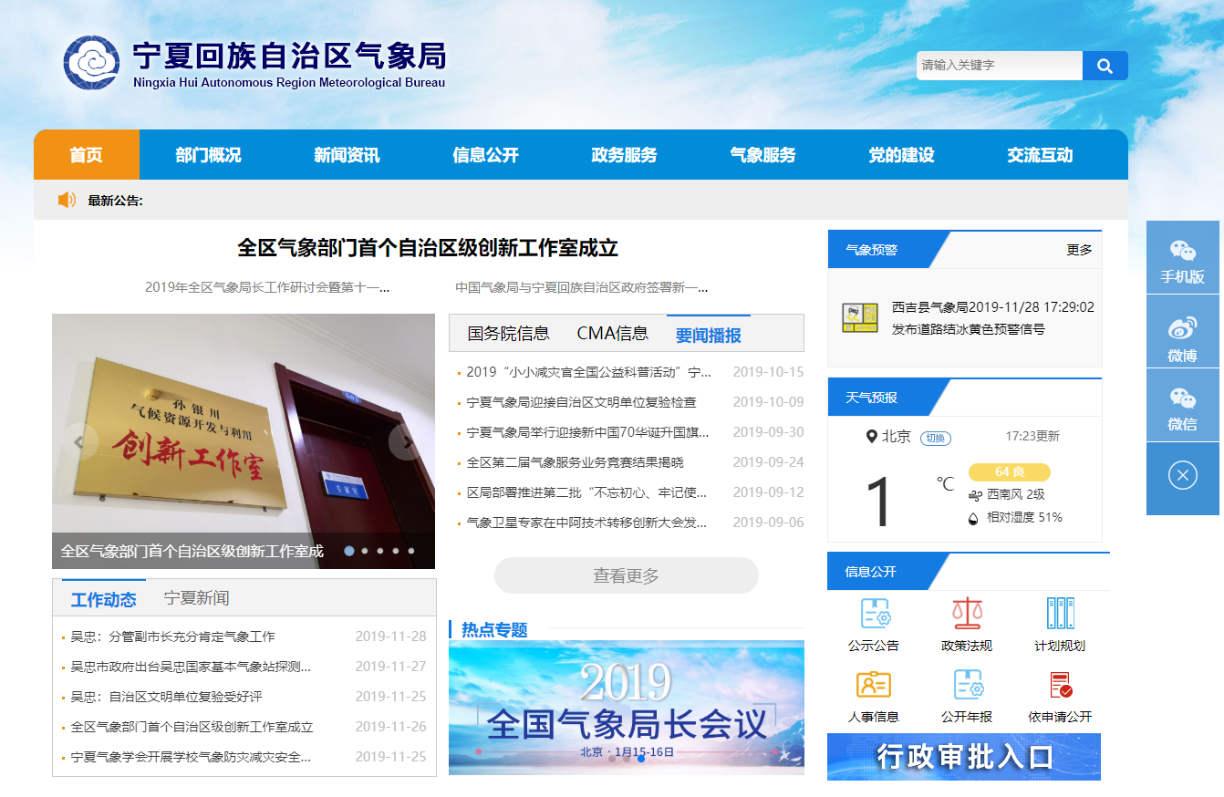 近期由本公司設(shè)計(jì)搭建制作的寧夏回族自治區(qū)氣象局網(wǎng)站正式上線