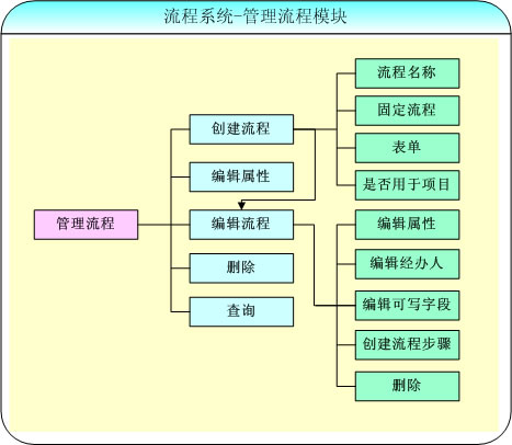流程是工作流的核心,一切工作都是圍繞著流程來(lái)進(jìn)行。流程系統(tǒng)-管理流程模塊可以實(shí)現(xiàn)創(chuàng)建流程(包括新建流程步驟、經(jīng)辦人、編輯可寫(xiě)字段等部分)、編輯流程、查詢(xún)流程等功能。