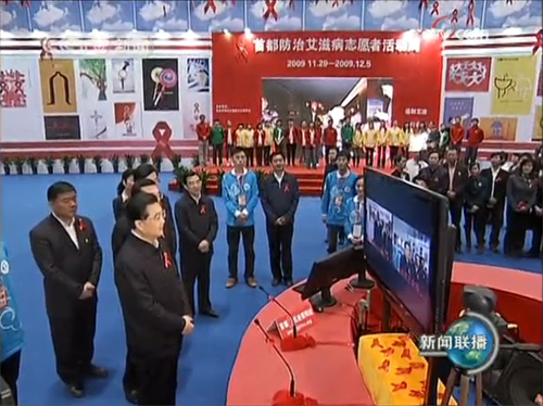 11月30日上午,在第22個(gè)世界艾滋病日到來(lái)之際,胡錦濤總書(shū)記和中共中央政治局常委、國(guó)務(wù)院副總理李克強(qiáng)來(lái)到國(guó)家會(huì)議中心,參加首都防治艾滋病志愿者活動(dòng)。胡錦濤代表黨中央,向?yàn)榉乐伟滩∽鞒鲐暙I(xiàn)的廣大醫(yī)療衛(wèi)生工作者和志愿者表示誠(chéng)摯的問(wèn)候。