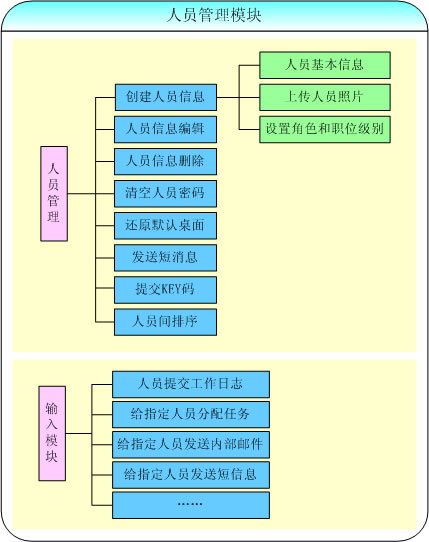 通過用戶信息的創(chuàng)建與管理,并與角色管理和部門管理配合使用形成一個分部門的用戶管理體系,如用戶可以提交工作日志,該部門的相關領導可以查閱部門中的員工工作日志;在我的任務中可以通過添加用戶來發(fā)送新建的任務;管理員可以指定的用戶來發(fā)送內部郵件;可以在全體人員列表中選擇某個用戶來發(fā)送內部郵件和短信息。