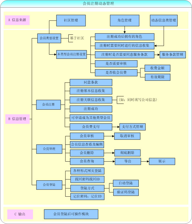 此功能模塊,可實(shí)現(xiàn)系統(tǒng)可注冊(cè)會(huì)員類(lèi)型的預(yù)設(shè),會(huì)員注冊(cè)時(shí)各種選項(xiàng)的動(dòng)態(tài)設(shè)置,會(huì)員費(fèi)支付及支付選項(xiàng)控制,會(huì)員的審核,編輯刪除,會(huì)員各種形式的登陸及登陸后相關(guān)功能引導(dǎo)。