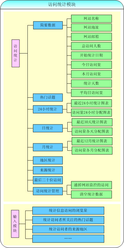 訪問統(tǒng)計(jì)模塊由簡要數(shù)據(jù)、熱門話題、24小時統(tǒng)計(jì)、日統(tǒng)計(jì)、月統(tǒng)計(jì)、地區(qū)統(tǒng)計(jì)、來源統(tǒng)計(jì)、最后二十位訪問、訪問統(tǒng)計(jì)管理等欄目組成。下面對這些功能逐一進(jìn)行介紹: